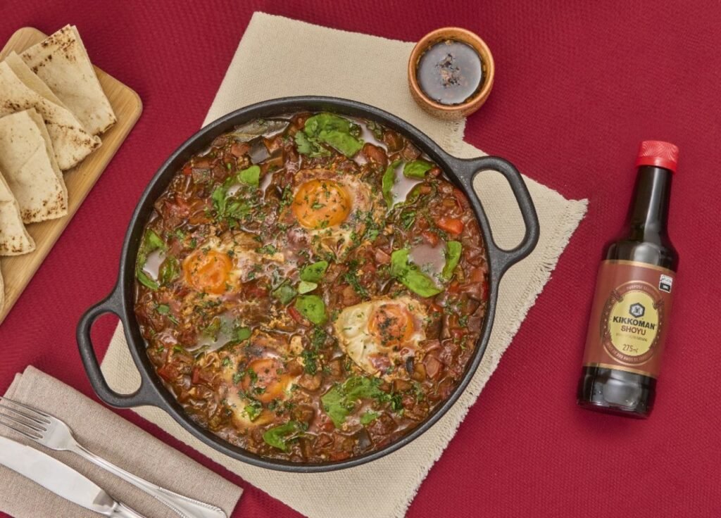 Shakshuka Ingredientes 10 tomates em cubos 1 talo de salsão picado 2 cebolas em cubos 2 dentes de alho picadinhos