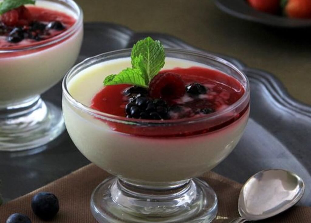 Panna Cotta com Frutas Vermelhas Ingredientes Panna cotta 1 pacote de gelatina sem sabor 60ml de leite frio 400ml de