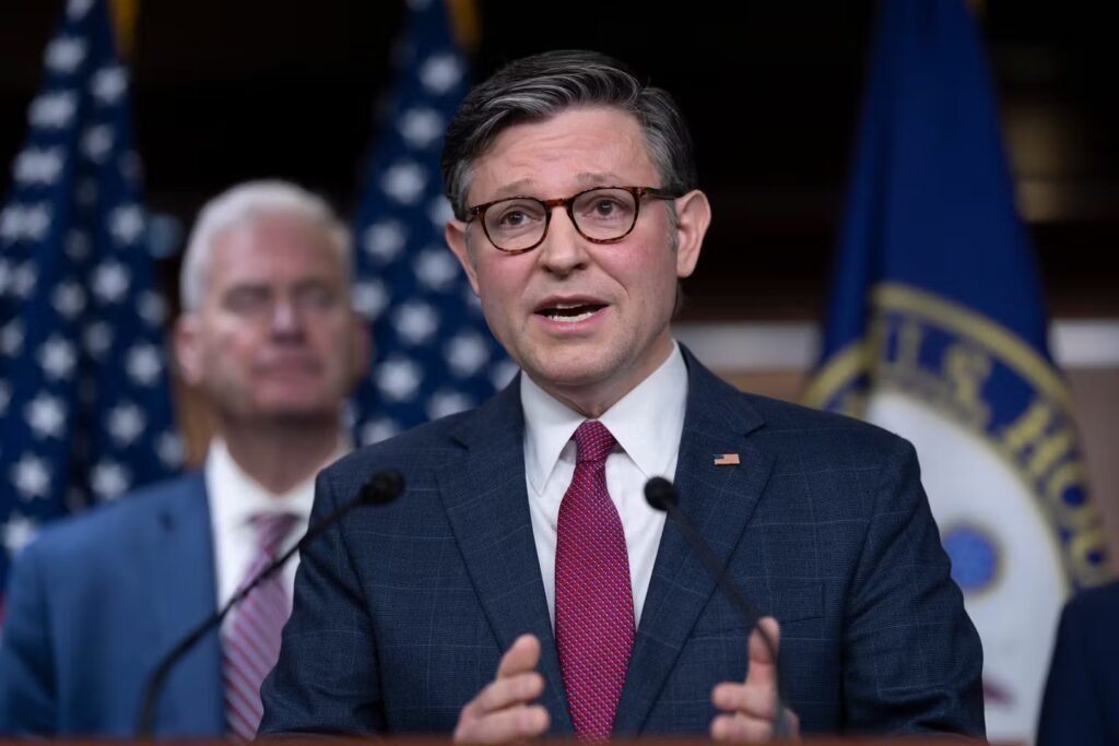 O presidente da Câmara, Mike Johnson, R-La., fala aos repórteres no Capitólio em Washington, quarta-feira, 10 de dezembro de 2025.