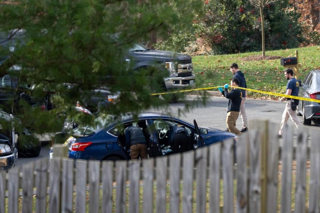 Policiais examinam um veículo em frente à casa do suposto homem-bomba de 6 de janeiro de 2021 em 4 de