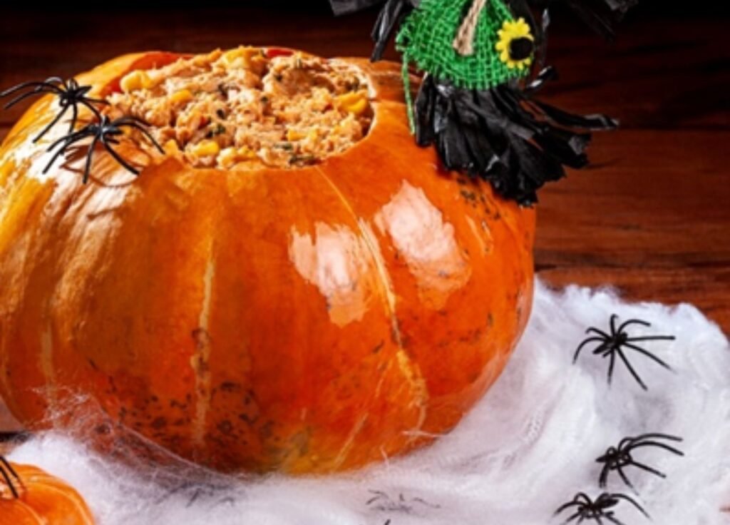 Moranga recheada de Frango Cremoso Ingredientes 1 abóbora cabotiá média 500 gramas de frango cozido e desfiado 2 colheres de