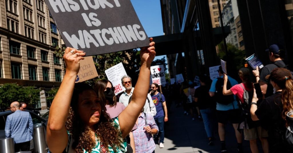 (Reuters) – Roteiristas de cinema e TV realizaram uma manifestação em Nova York pela liberdade de expressão nesta sexta-feira,