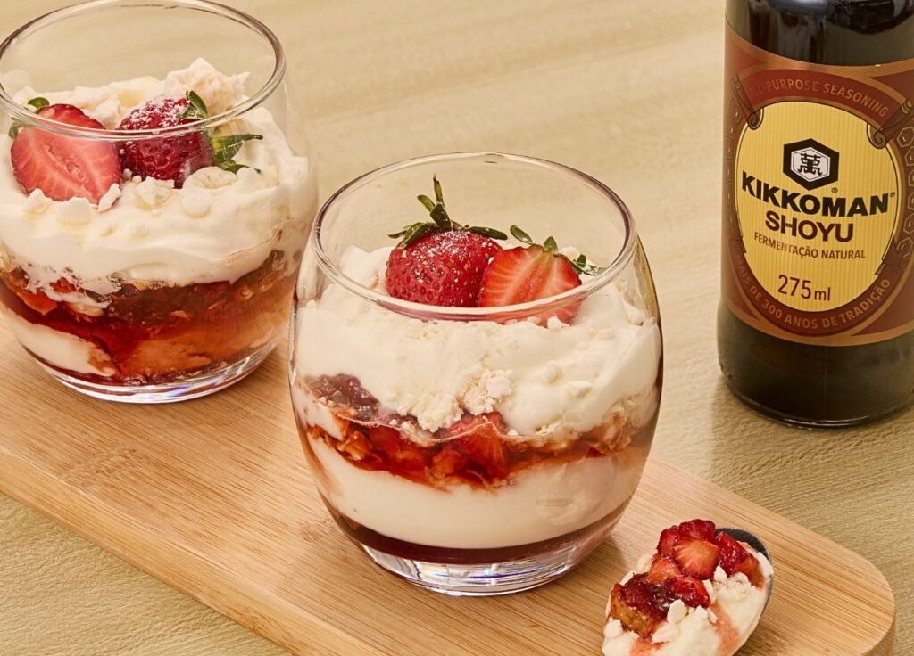 Para os amantes de um docinho, confira uma receita sensacional de suspiro com calda de morango e shoyu que