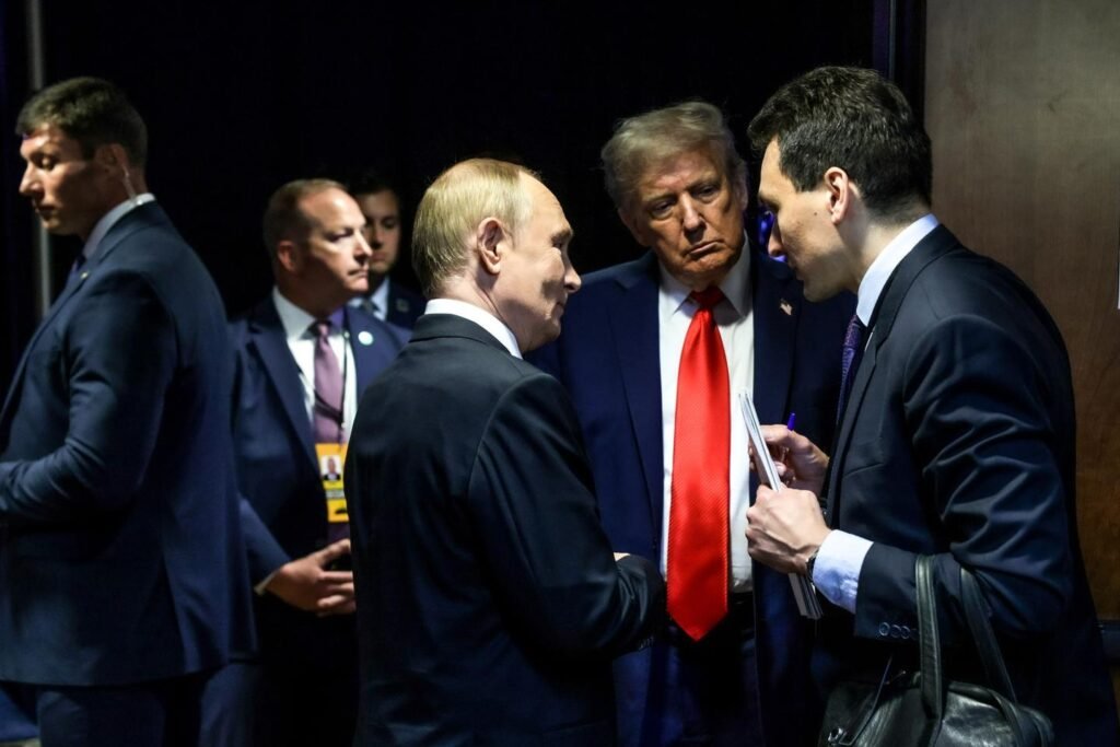 O presidente russo Vladimir Putin, o presidente dos EUA, Donald Trump, e o secretário de Estado dos EUA, Marco Rubio,