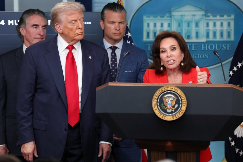 O presidente dos EUA, Donald Trump, secretário do interior dos EUA, Doug Burgum, e o secretário de Defesa dos EUA,