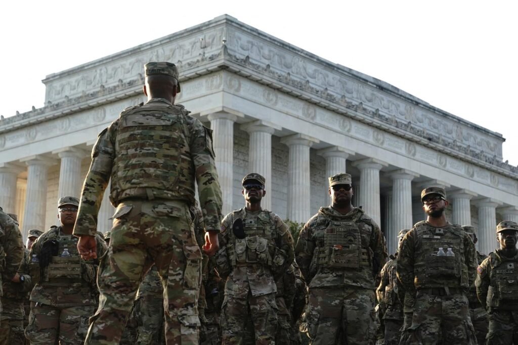 A Guarda Nacional destacada no National Mall, Washington, DC, 16 de agosto de 2025. Nathan Howard/Reuters Os moradores de Washington,
