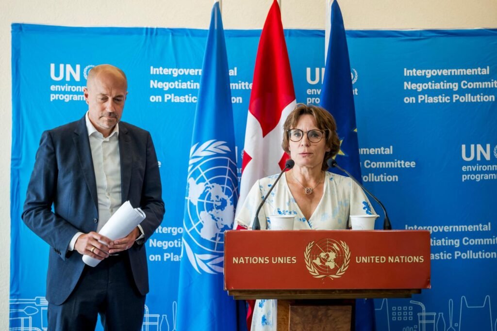 O ministro do Meio Ambiente Dinamarquês, Magnus Heunick, e o Comissário Europeu da UE, Jessika Roswall, aguarda a conferência de