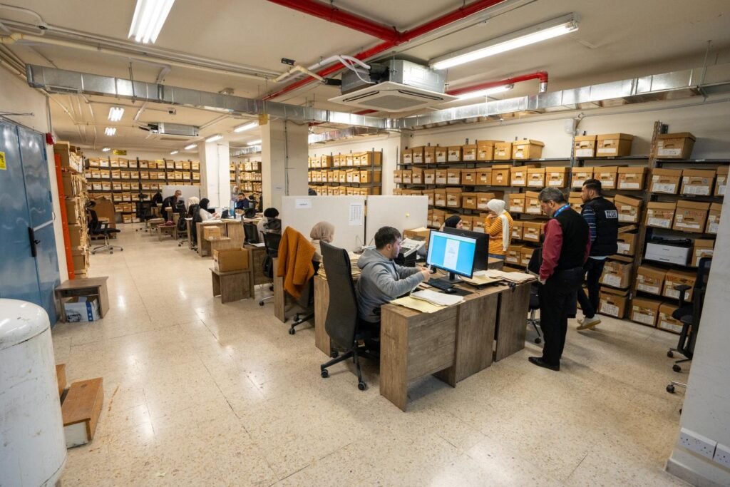 Durante a digitalização dos arquivos da UNRWA, os arquivos da família de refugiados palestinos nos escritórios da UNRWA em Amã,