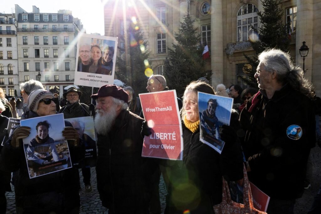 Uma manifestação em apoio ao refém francês Olivier Rondeau (lançado em março), Cécile Kohler e Jacques Paris, realizados em Paris