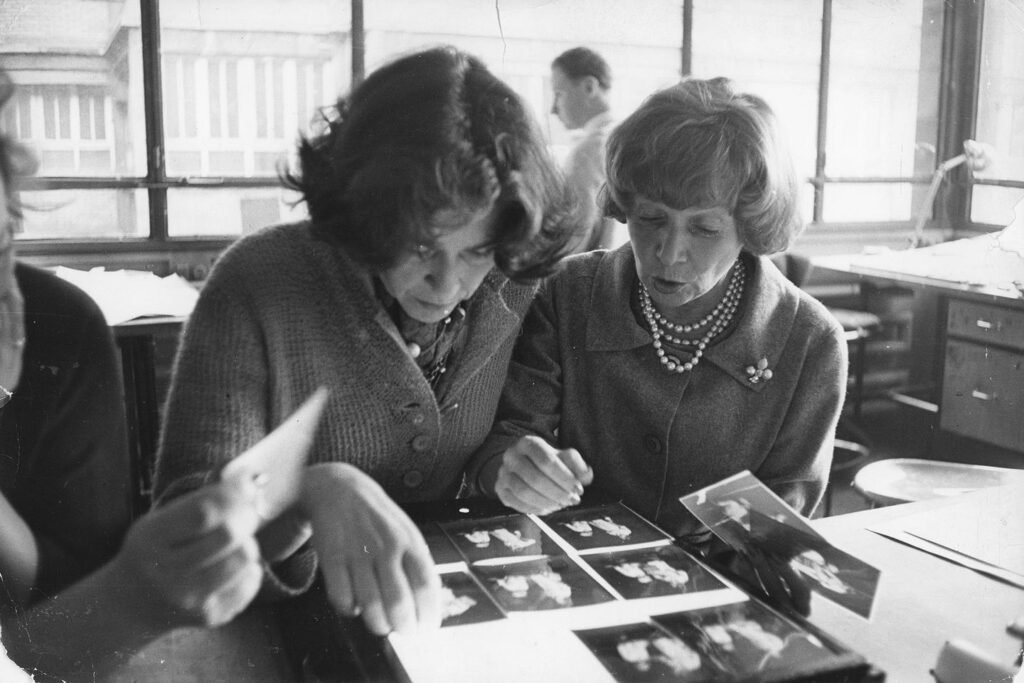 Capa da primeira edição de “Elle” publicada em novembro de 1945. Gallica/Bnf Em uma mulher loira jovem e sorridente, segurando