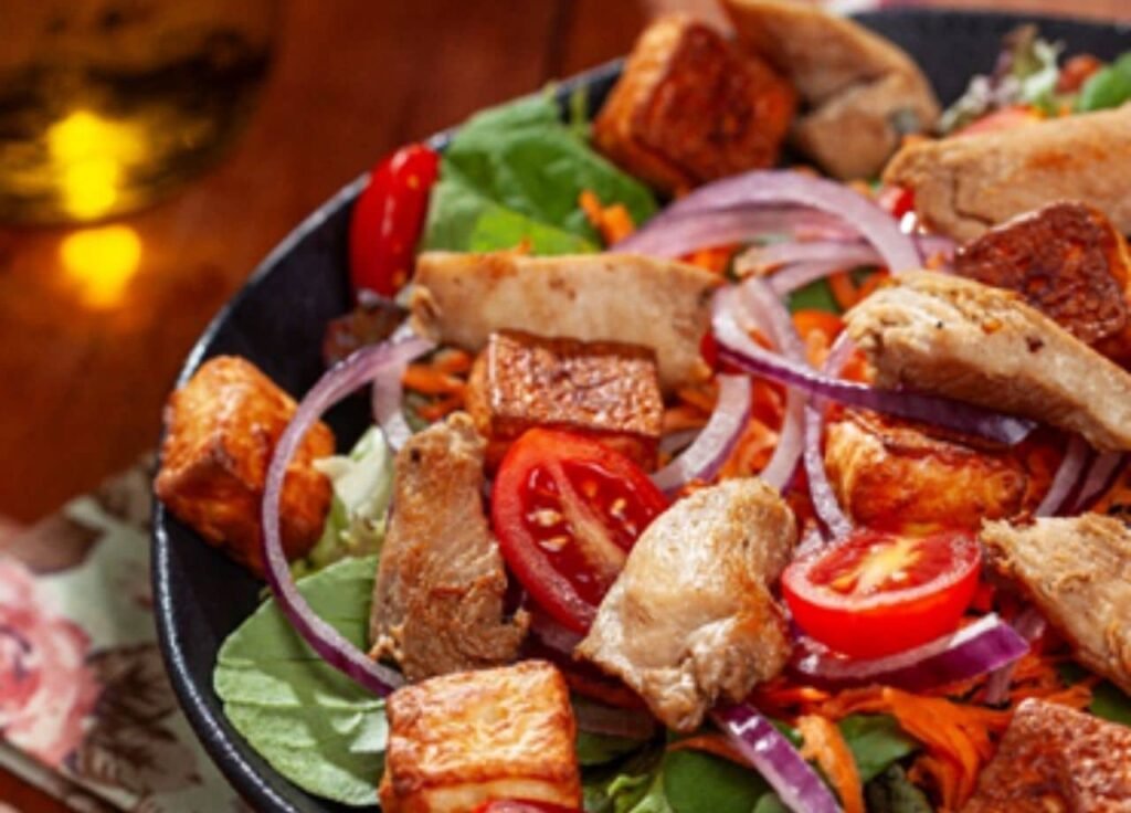 Salada Primavera Ingredientes Salada 100 gramas de mix de folhas (rúcula, alface americana, alface roxa) 6 tomates cerejas cortados ao