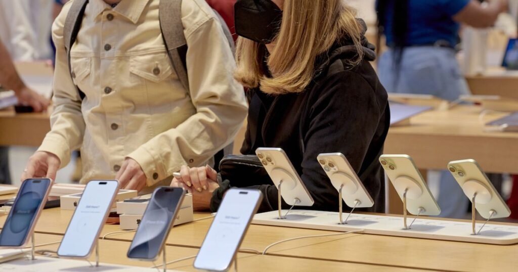 Tarifas derrubam ações da Apple, mas clientes lotam lojas para comprar iPhones nos EUA