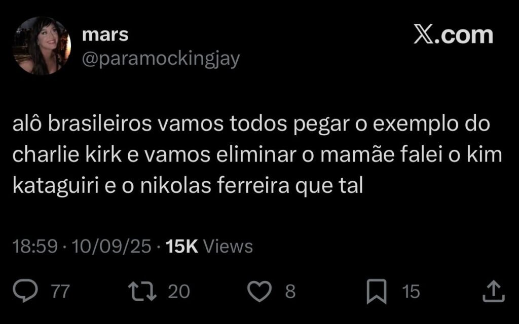 Há o risco de que casos como o do assassinato do ativista conservador Charlie Kirk ocorram no Brasil. É o
