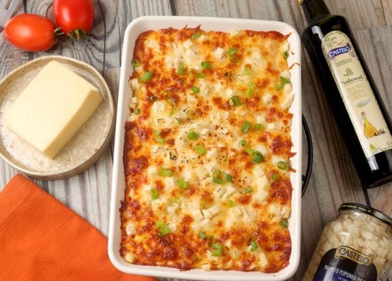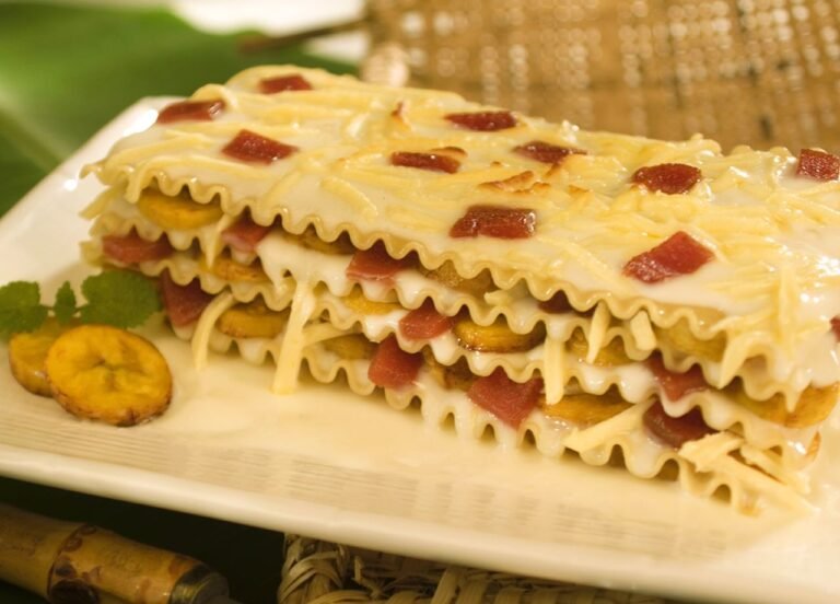 A combinação tropical da Lasanha de banana com queijo e goiabada, surpreende pelo equilíbrio entre o doce e o