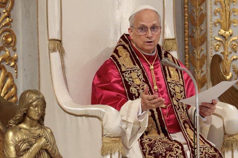 O Papa Leo Xiv entrega homilia na Basílica de São Paulo, fora dos muros, em Roma, Itália, 20 de maio