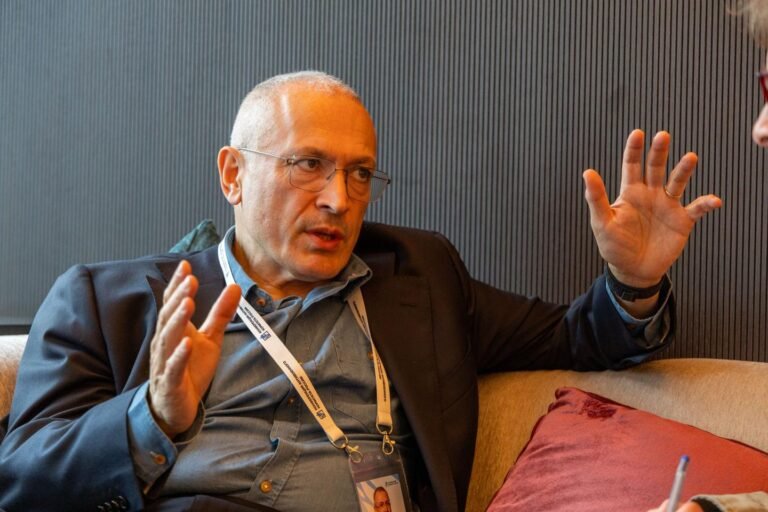 Mikhail Khodorkovsky em uma conferência anti-guerra, que abriu várias dezenas de oponentes russos em 21 de maio de 2025, em