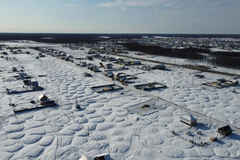 Na vasta brancura desta parte da Sibéria, os campos são pontilhados com montes cobertos de neve parecidos com pães nevados,