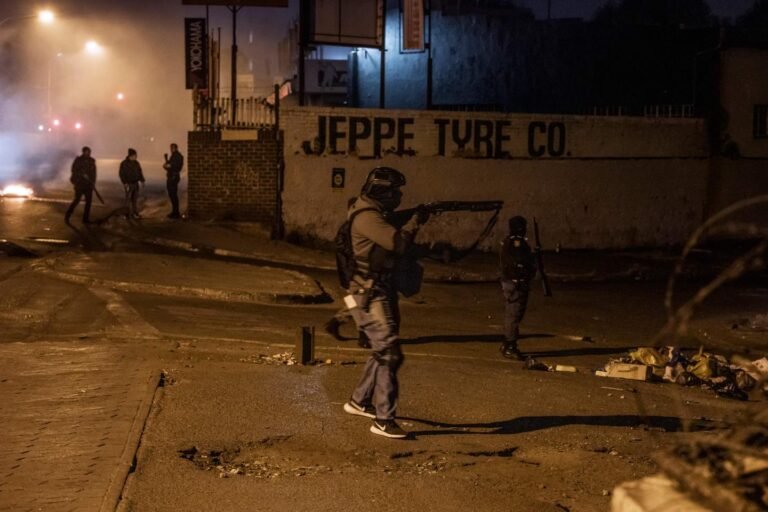 Carta de Joanesburgo Agentes de segurança privada durante uma operação conjunta com a polícia sul -africana em Jeppestown, um subúrbio