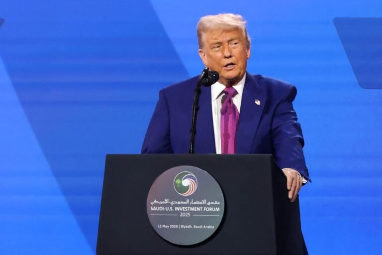 O presidente dos EUA, Donald Trump, fala durante o Fórum de Investimentos Saudi-EUA no Centro de Conferências Internacionais do King