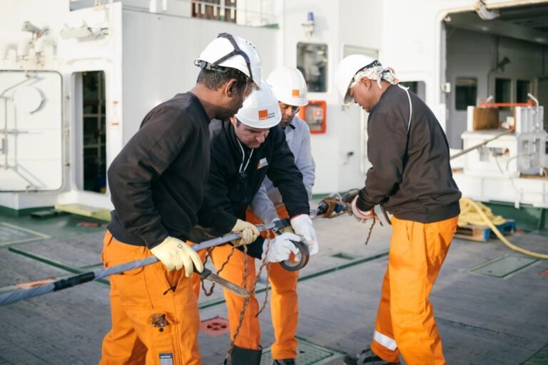 Do convés do Sophie-Germain, o navio de lançamento de cabos da Orange Marine, amarrado no porto de La Seyne-sur-Mer (sul