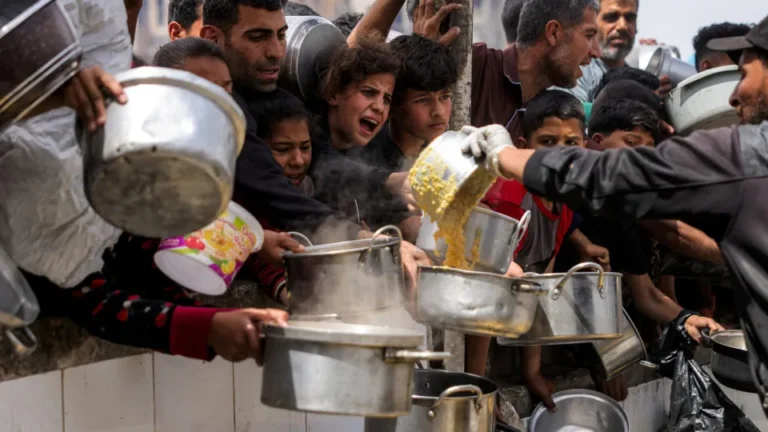 Em um centro de distribuição de Khan Yunis, na faixa de Gaza, em 21 de abril de 2025. Abdel Kareem