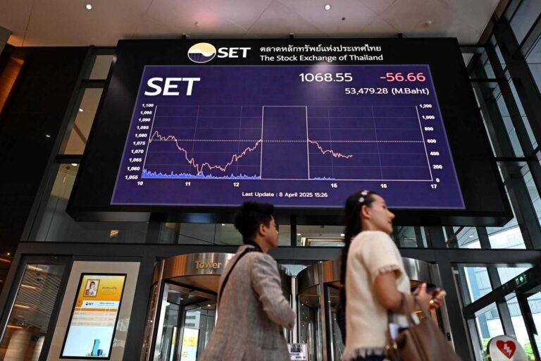 Um comerciante no Conselho de Comércio de Chicago em 7 de abril de 2025. Ashlee Rezin / AP A queda