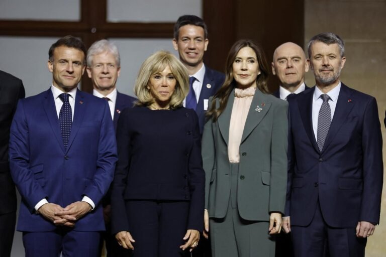 O rei da Dinamarca Frederik, a rainha Mary, o presidente francês Emmanuel Macron e sua esposa Brigitte Macron posam para