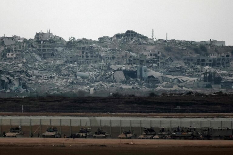 Veículos blindados israelenses ao longo da barreira de separação com Gaza, 21 de agosto de 2025. Jack Guez / AFP