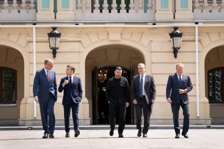 O chanceler alemão Friedrich Merz, o presidente francês Emmanuel Macron, o presidente ucraniano Volodymyr Zelensky, o primeiro -ministro britânico Keir