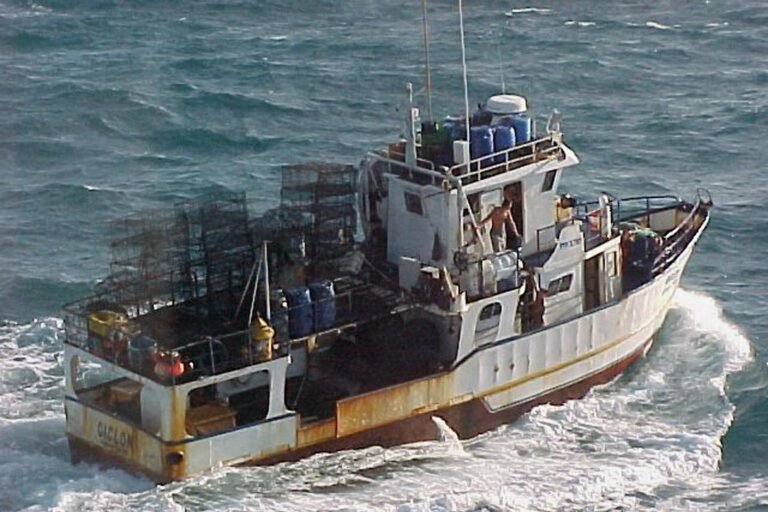 Um barco de pesca que transporta cocaína no Oceano Atlântico, outubro de 2002. AFP A Marinha francesa foi 10 toneladas