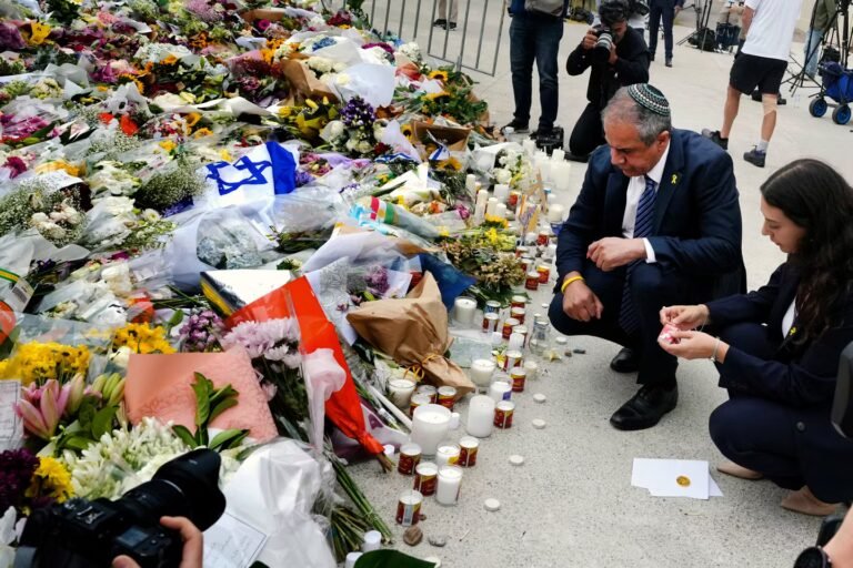 O Embaixador de Israel na Austrália, Amir Maimon, presta sua homenagem no Bondi Pavilion, Bondi Beach, em 16 de dezembro