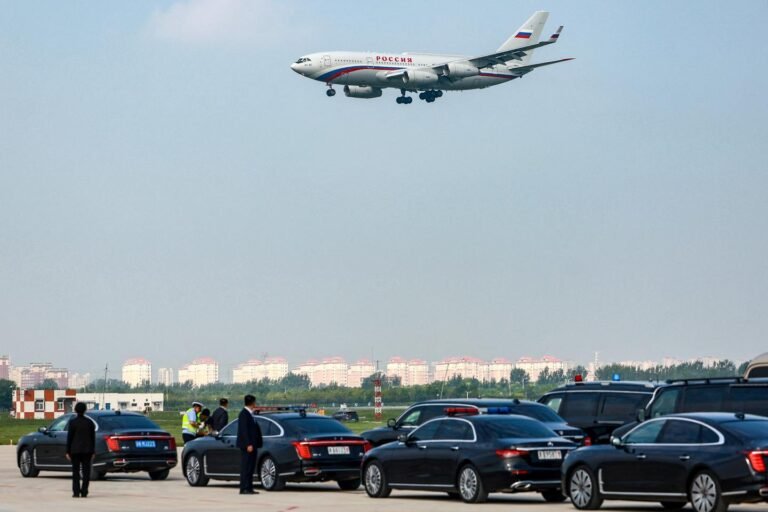 O avião de Vladimir Putin se prepara para pousar enquanto o presidente russo chega para a cúpula da Organização de