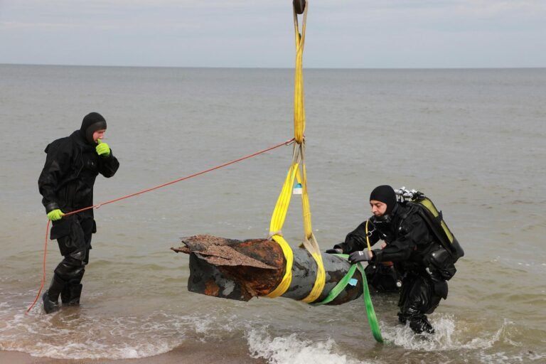 Especialistas da Marinha em explosivos estão recuperando três bombas da era da Segunda Guerra Mundial do leito do mar do