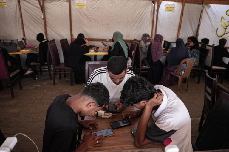 Os alunos do ensino médio palestinos se prepararam para os exames on-line de uma semana em Gaza em 7 de