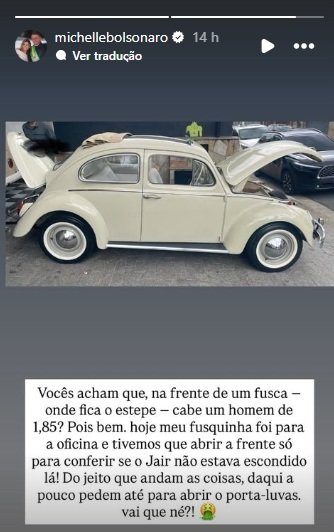 A ex-primeira-dama Michelle Bolsonaro usou as redes sociais, nesta terça-feira, 9, para relatar que agentes abriram seu fusca em busca
