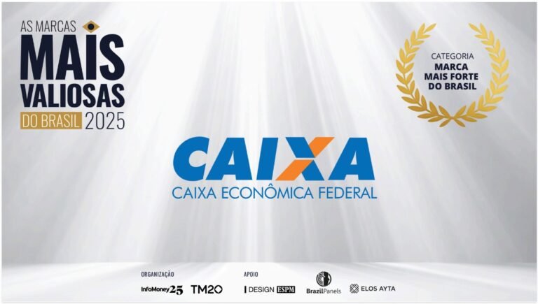 A Caixa foi eleita nesta segunda-feira (3) como a marca mais forte do Brasil, com pontuação de 98,6, em evento