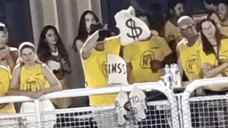Homem protesta contra Lula durante desfile da Acadêmicos de Niterói Homem protesta contra Lula durante desfile da Acadêmicos de Niterói