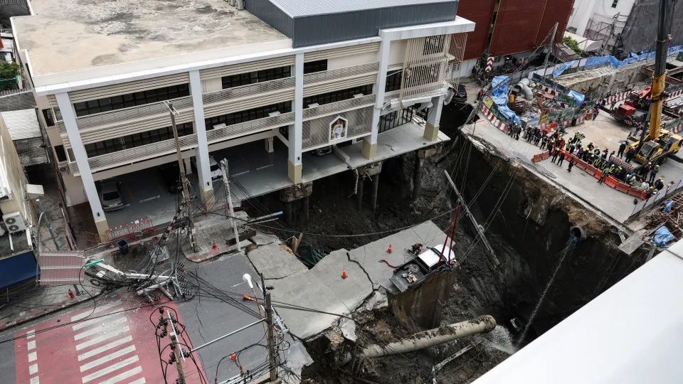 Um buraco de 50 metros de profundidade se abriu em frente a um hospital de Bangkok, na manhã de quarta-feira (24), ‘engolindo’ carros e postes de eletricidade, em um desabamento que chocou os habitantes locais. A causa está relacionada a construção de uma estação ferroviária subterrânea próxima.
