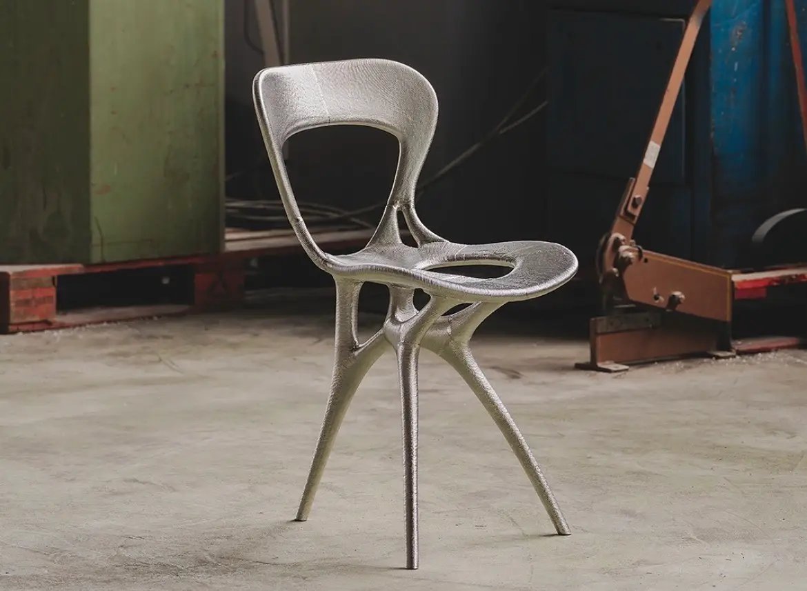 A ideia era observar até que ponto a tecnologia conseguiria assimilar essa linguagem visual e gerar variações coerentes. De fato, o resultado final chama atenção, pois a cadeira foi impressa em 3D em metal, é funcional e pode ser usada normalmente.