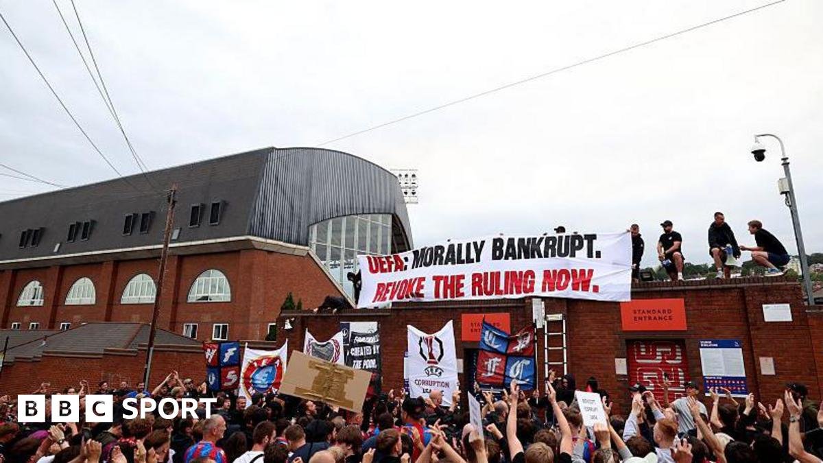 Na terça -feira, centenas de fãs marcharam para o Ground Park, do Palace, carregando faixas e cantando contra o órgão governante do futebol europeu.