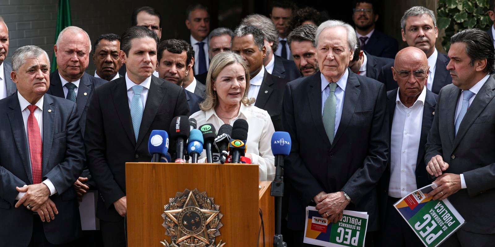 O governo apresentou ao presidente da Câmara, Hugo Motta, e a líderes partidários o texto da Proposta de Emenda à Constituição (PEC) da segurança pública. O projeto altera alguns artigos da Constituição Federal para atualizar diretrizes e unificar protocolos.