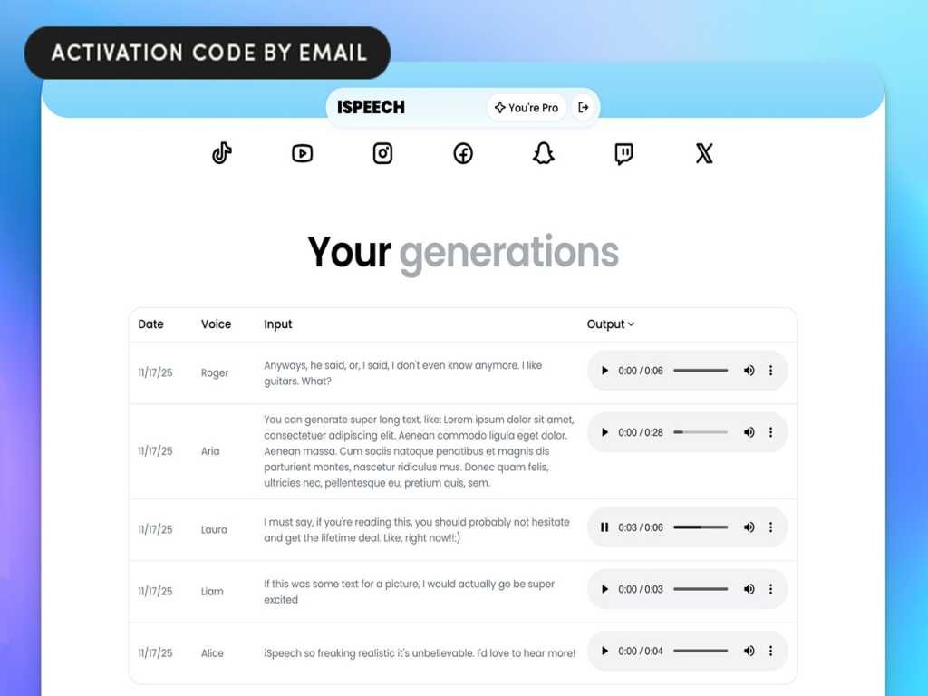 Por se tratar de uma oferta vitalícia, você mantém o acesso enquanto o iSpeech adiciona novas vozes e aprimora seus modelos.