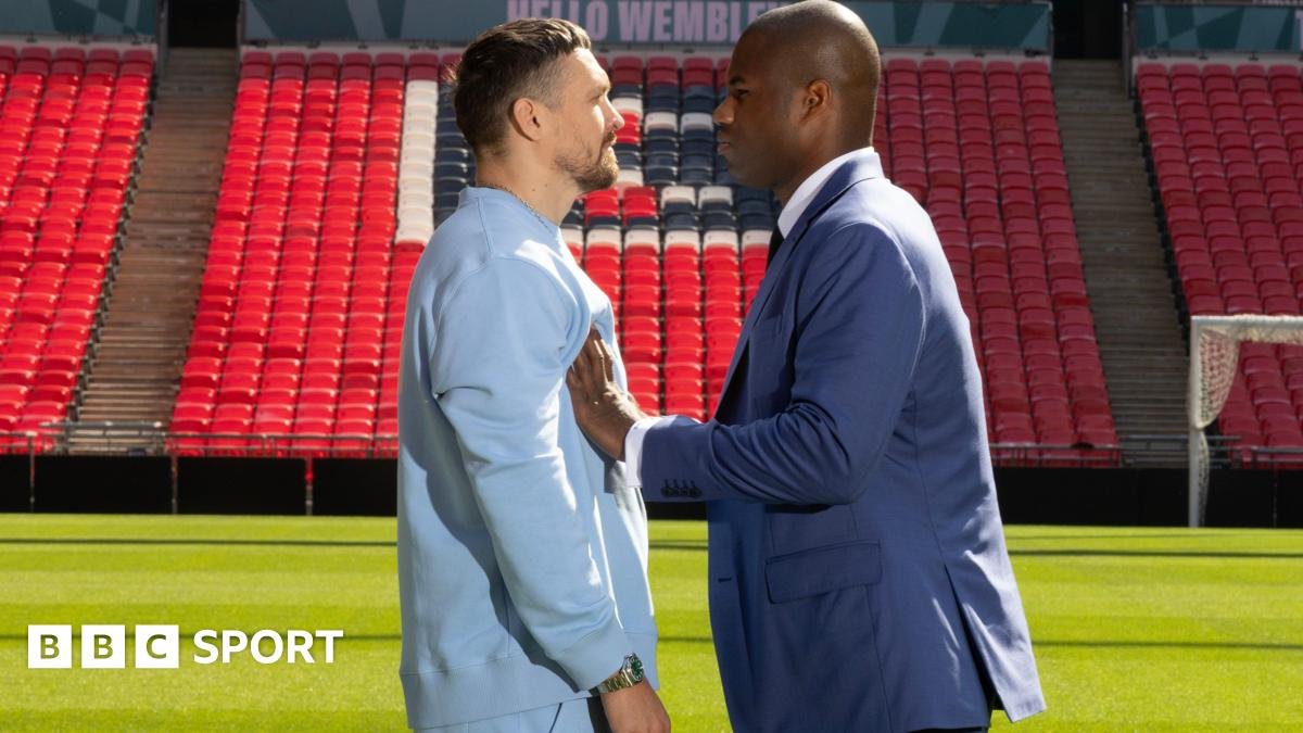 Um dia após a confirmação da luta, o par posou para fotos em campo em Wembley na segunda-feira, quando Dubois empurrou o USyk, de 38 anos, no peito.