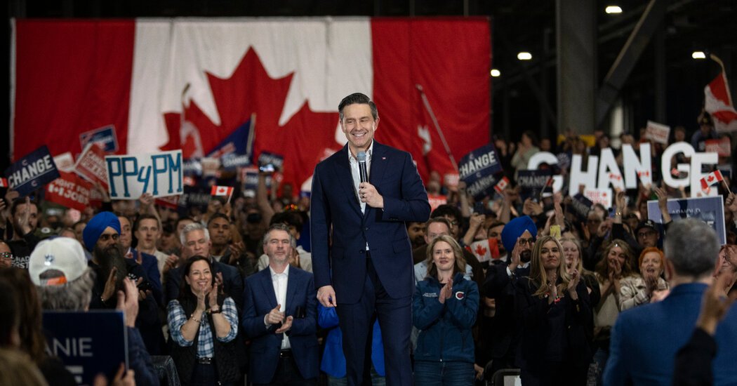 A maioria das pesquisas mostra Poilievre e os conservadores por trás do Partido Liberal, liderados pelo primeiro -ministro Mark Carney, 60, por cerca de sete pontos percentuais.