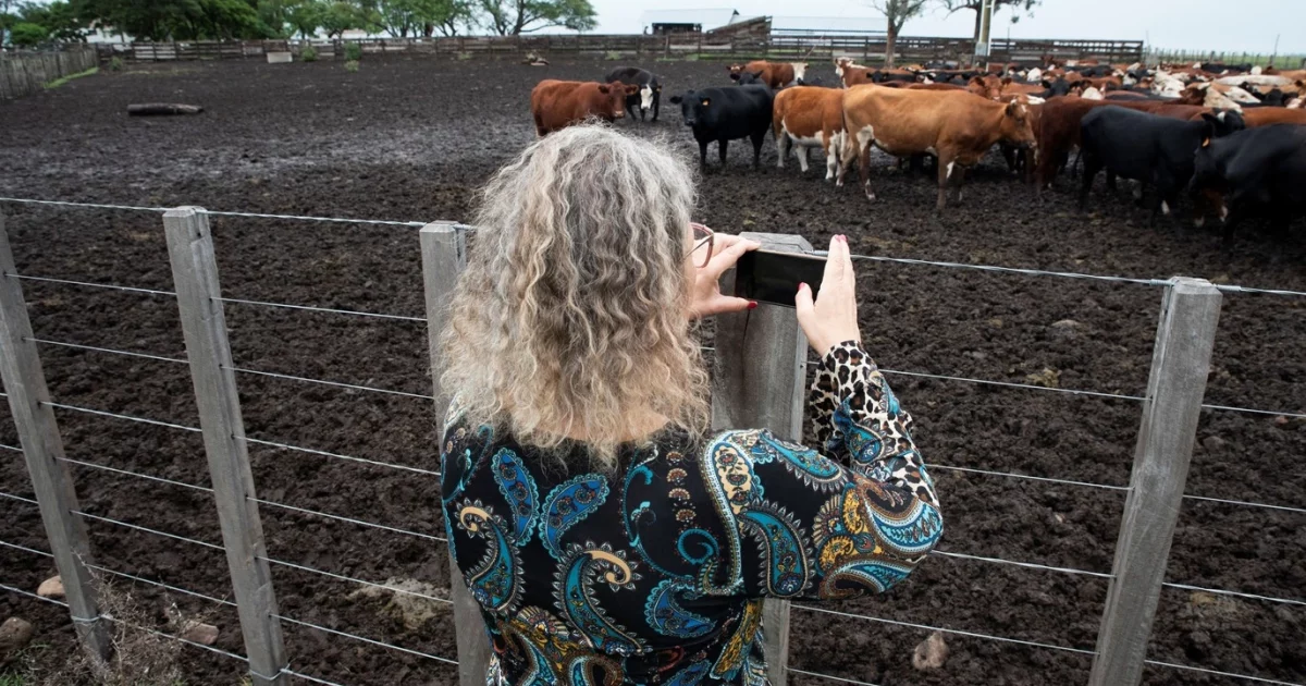 Sandra Palleiro está em busca de suas vacas perdidas. A contadora de 60 anos está em um campo lamacento no final de uma trilha de fazenda na região da fronteira do Uruguai com o Brasil.